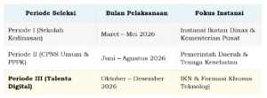 Untuk menjaga kestabilan sistem infrastruktur digital (SSCASN) dan efektivitas tes, BKN membagi jadwal seleksi ke dalam tiga periode utama sepanjang tahun 2026: